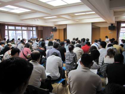 京都教育大学の梁川正教授から「植物を育てる楽しみ」の講演を聴きました。植物栽培の効用や身近でできる袋栽培、緑のカーテンのこととともに、クローン増殖の話もうかがいました。専門的なお話の中に、これからの環境教育、幼児期から大切にしていきたいことを沢山話していただいたと思いました。実際に栽培活動をしてみられませんか?と、マザーリーフを見せられました。降園時には、大勢の方がマザーリーフの葉を持ち帰られました。ご家庭で栽培が成功するといいですね。