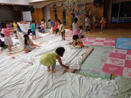 そして宝さがしをした後,自分たちで布団やシーツを敷いてみんなで寝ました。2日間ともみんな元気で楽しく過ごすことができました。よかったです。
