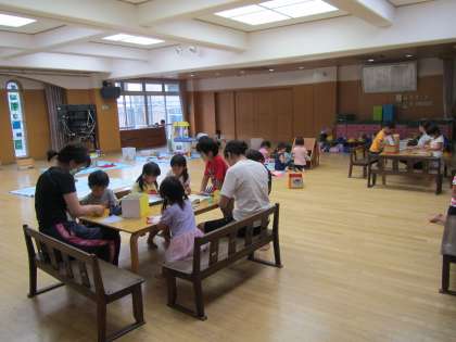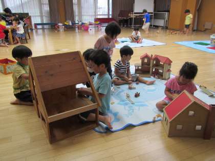 今週に入り,少し涼しくなってきました。夏休みの間も,毎日なかよし広場では,元気な声が響いています。今日は,プールで水遊びを楽しんでから,折り紙製作や木の電車レール,ビー玉転がし,人形ごっこなど…各々好きな遊びを楽しみ,ほっこり過ごしています。今日と明日と,保育体験で高校生のお姉さん先生が来てくれ,さっそく仲良しになっている子どももいて,とても嬉しそうです。