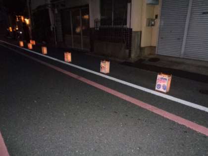 その姉小路通には、中京もえぎ幼稚園の年長の子どもたちが描いた鉾を行灯にしてくださり、灯がともりました。京都らしい伝統的なお祭りに参加できて、思い出に残る1日となりました。姉小路行灯会を催してくださった地域の皆様、ありがとうございました。