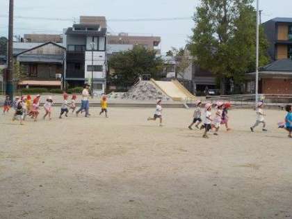 2学期に入ってから,毎朝,竹間公園で体操とかけっこなどをして体を動かすことを楽しんでいます。秋の気持ちいいい空のもと,みんなで思い切り走ったり,追いかけっこをしたりして気持ちいい汗をかくことを継続してしていきたいと思っています。
