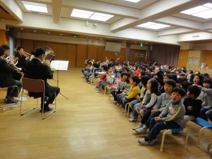 また,演奏の途中で,楽器の名前を教えていただきそれぞれの音色をきかせてもらいました。(ちなみに「どの楽器をやってみたいか?」の問いに一番人気があったのがトロンボーンでした)