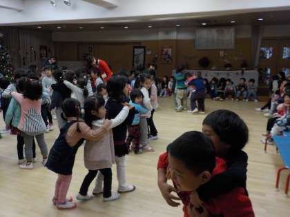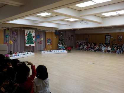 幻想的な遊戯室に,サンタクロースが登場しました。「わあ,サンタさんだ」と口にする子どもや,驚きと嬉しさが大きくて言葉が出てこない姿もありました。