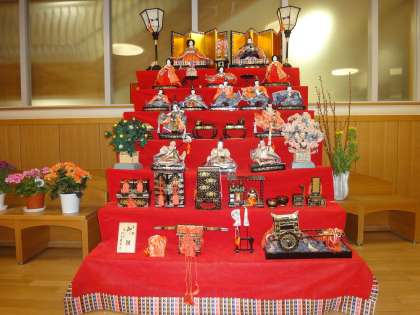 幼稚園では,おひなさまを見ながら話を聞いたり,歌を歌ったりして楽しいひなまつりをしました。