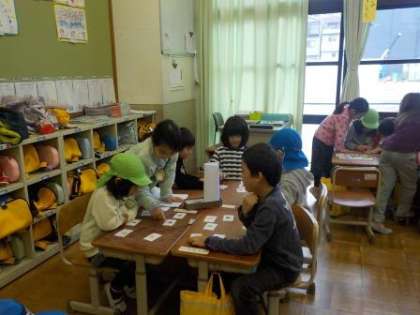 1組から3組に3グループに分かれて,クラスに入れてもらい,1年生2人に5歳児1人でチームになって,様々な体験をさせてもらいました。