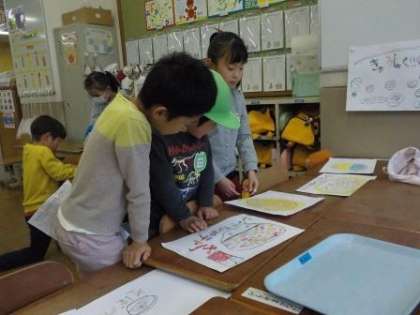ランリュックを背負わせてもらって校内を探検したり,心配なことを聞いてもらって答えてもらったり,折り紙をしたり,点つなぎをして花丸をつけてもらったり,それぞれのクラスで,たくさんの経験をさせてもらうことができました。子どもたちは少し緊張しながらも,とても楽しんでいて,優しいお兄さんお姉さんに安心していたようでした。