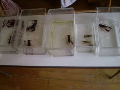 一匹や二匹と違い,こんなにたくさんいると子どもの気持ちも高まるようです。弁当の時間にもザリガニの話をたくさんしていました。「小さいのって,まだ赤ちゃんやんなぁ」「そうやで!生まれたばかりやで」「足でご飯食べてたなぁ」子どもたちなりに観察したことを,口々に伝え合っていました。