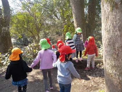 昨日の雨が嘘のようにとてもいいお天気で,子どもたちもとても嬉しそうでした。5歳児と3歳児で手をつなぎ,御苑に行きました。5歳児からは「3歳さんを守ってあげるんだ」と言う気持ちが伝わってきました。