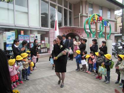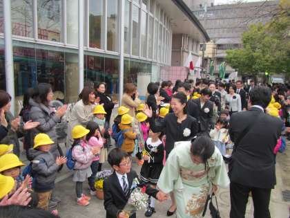 最後に,みんなで花道をつくってお見送りをしました。ゆり組すみれ組の皆さん,おめでとうごさいました。幼稚園でのたくさんの思い出を胸に,小学校でも頑張ってください。また,幼稚園に元気な顔を見せてくださいね。