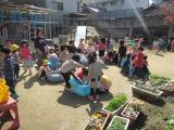 今日は,これまでたくさん遊んだ園庭のおもちゃをみんなできれいにしました。年長さんが卒園してしまい,今日は年中組と年少組だけで取り組みました。袖をまくりあげ,タライの中でおもちゃをごしごし…あっという間に園庭のおもちゃがきれいになりました。「これやるわ」と頼もしい年中組の姿もみられました。また来年度みんなで遊ぶのが楽しみですね。