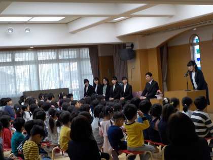 子どもたちのお迎えの言葉と幼稚園の歌を