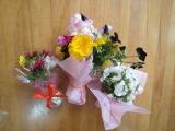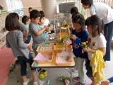 今日は,今まで園庭で育てていた花を自分たちでつみとって花束をつくり,おうちの人にプレゼントすることにしました。「この色でやったら喜ぶと思う」とラッピングの紙の色も考えて選びながらつくる姿がありました。自分の花束が出来上がると「かわいい!」ととてもうれしそうにしていました。降園の時間になると,おうちの人を驚かそうと隠しながら歩いて,渡しに行っていました。子どもたちとおうちの方の嬉しそうな姿をみてうれしく感じました。