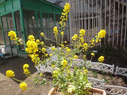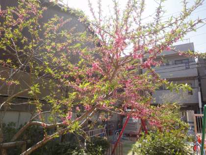 温かい陽だまりのもと,春を楽しんでいる子どもたちです。
