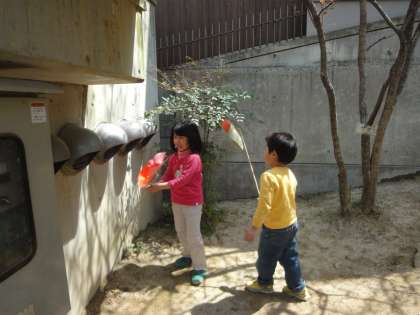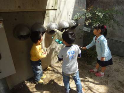 すると…園庭の隅でじー…っとしている子どもたち発見!