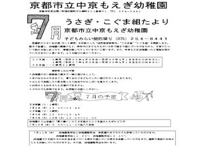 未就園児クラス こぐま組・うさぎ組 7月の予定