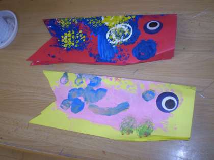 今,幼稚園では各学年,こいのぼり作りを楽しんでいます。