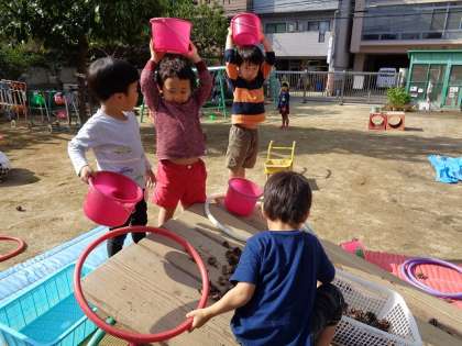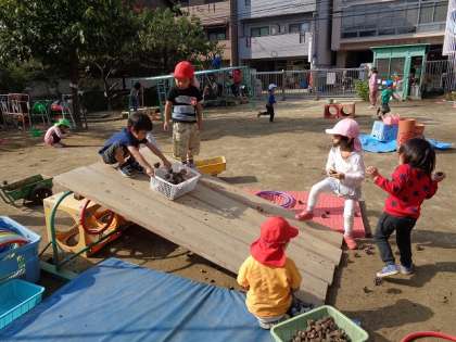 どんぐりやまつぼっくりを転がしたり,