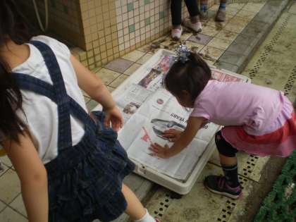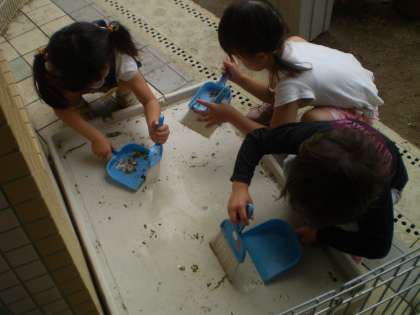 「じゃぁ私ブラシする!」「最初にほうきとちりとりやんな」
