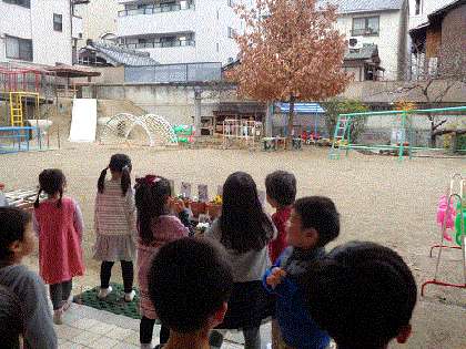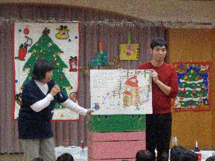 サンタさんとおわかれした後は,園長先生がお楽しみで「ぐりとぐらのおきゃくさま」の絵本を読んでくださいました。みんなでおいしいケーキもいただいて,嬉しいことがいっぱいの楽しい集いになりました。