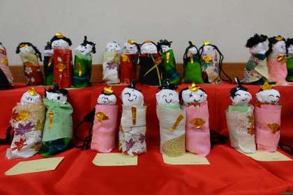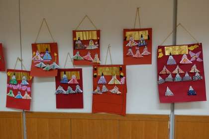 幼稚園にお雛様も飾り,ひな人形をつくり始めました。