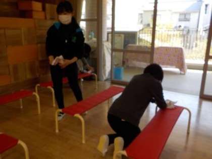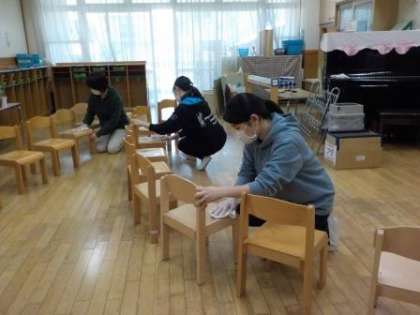 遊戯室や保育室も清掃、消毒して準備を進めています。