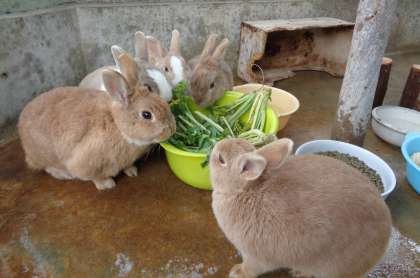 ウサギが食べているのは,大根の葉です。