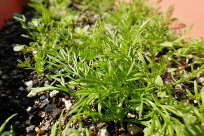 細ーい葉っぱがたくさん出てきたよ。今はまだ小さいけど,大きくなったらいい匂いがするはず!