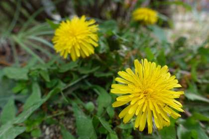 えんていには たんぽぽが ちらほら かおを だしていますよ。