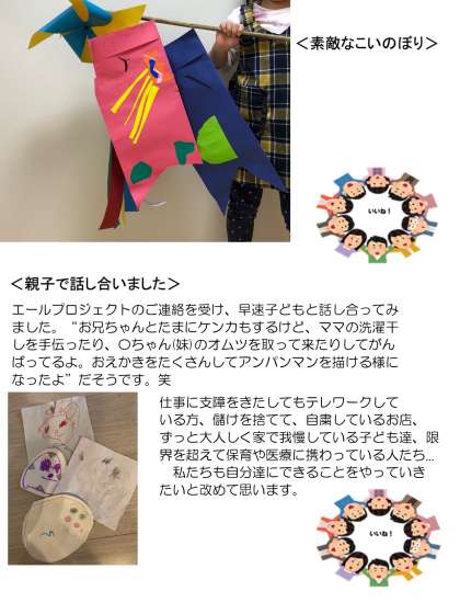 幼稚園のものにも励ましの言葉を添えてくださっていました。本当にありがとうございます!元気が出ます!