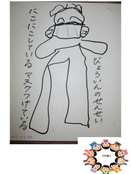 がんばっている病院の先生に心を寄せて絵をかいてくれました。おうちできっとそのような話をしてくださって感謝の気持ちが生まれているのでしょうね。