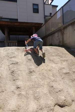いろいろなすべり台を滑ったり、築山に登ったりして遊んでいました。“楽しい”と感じると繰り返し何度も試して楽しんでいました。