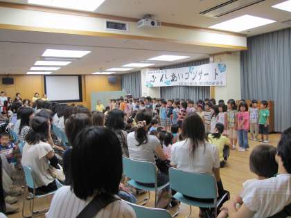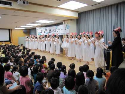 6月25日(木)こどもみらい館で中京もえぎ幼稚園創立10周年記念コンサートが開かれました。各学年の歌、教職員の歌、OBのママさんコーラス、PTAの方たちの出し物など、1時間が瞬く間に済みました。みんなで歌いながら幼稚園の歌にあるように「やっぱりいいね みんながいいね」を実感するひとときでした。来賓の元園長先生が「長い時間だったけれど3歳児さんもいいお客様でいられましたね」と感想をのべて帰られました。いろいろご協力いただいた皆様ありがとうございました。