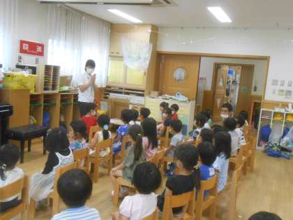 1学期の終業式は、各クラスで園長先生から話を聞きました。