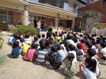 その後,みんなで園長先生のお話を聞き,「お・は・し・も・て」の約束を確認しました。