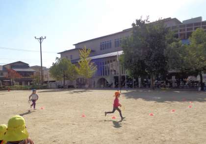 5歳児の子どもたちも,初めてリレーをする4歳児が列に並ぶのを手伝ったり,たくさん応援したりしてくれました!