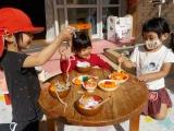 楽しそうな様子に年少児もまぜてもらい,「お肉ください」「カレーください」「ゼリーください」とバーベキューにはないものを注文しても,臨機応変に対応してくれる年中児でした。