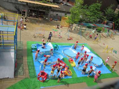 園庭のプール遊び