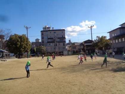 園内でもずっと友達と一緒に遊んでいたのですが,「クラスのみんなで一緒にしたい」という思いがうまれてきました。そこで,みんなで思い切り走ることを楽しんだり,スピード感も楽しめるようにと,公園に出てクラスで遊ぶことにしました。寒さに負けず,元気いっぱい走り,タッチし,助け…と楽しんでいます。何度も遊ぶうちにルールも自分たちで決め,みんなで遊ぶことを楽しみにしている子どもたち。「今日もしよう!」と笑顔で誘い合っています。