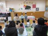 最後には大型絵本やエプロンシアターなどいつもと少し違うお楽しみをみんなで楽しみました。1月生まれの子どもたちお誕生日おめでとう!