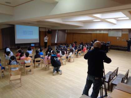 5歳児ゆり組・すみれ組の子どもたちが,「海と日本プロジェクトin京都」の取組のアニメーション鑑賞に参加しました。海のゴミ問題が主なテーマのアニメを見て,さまざま子どもたちは感じ学んでいました。