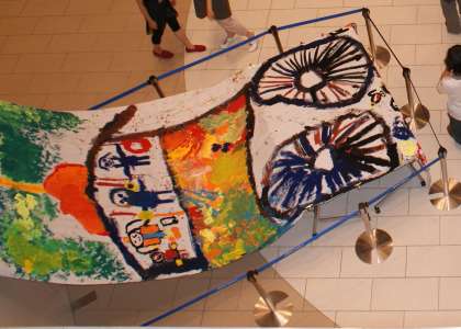 幼稚園の玄関に飾っていた大きな鉾の絵が、今日と明日、イオンモール京都に展示されています。