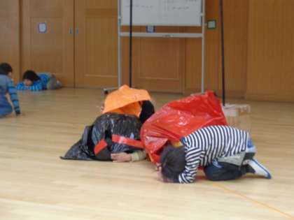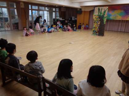 4歳児は,毎日楽しみながら劇あそびや歌を楽しんでいます。