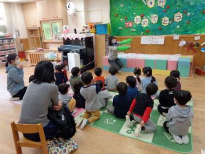 今日は2月生まれの誕生日会をしました。自分たちの誕生日会を待ちに待っていた2月生まれの子どもたち。お祝いの名札やプレゼントを渡すと嬉しそうに,何歳になったかを教えてくれる姿がありました。またお楽しみでは,それぞれ紙芝居を見たり歌を歌ったりすることを楽しみました。2月生まれの子どもたちお誕生日おめでとう!元気に大きくなってね!