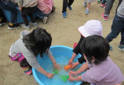 今日は第3学期の終業式でした。最後の日ということで,今まで遊んできた園庭のおもちゃをきれいにするピカピカ作戦をしました。汚れているおもちゃをどんどん見つけてくれたり,「私が運んでいくね」と洗い終わったおもちゃを元に戻してくれたり,あっという間に園庭のおもちゃがピカピカになりました。自分で見つけてやってみようとする姿には1年間の成長を感じました。学年に分かれて行った終業式では,園長先生のお話とともに,進級記念のプレゼントをもらいました。