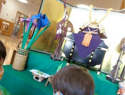園庭で気持ち良さそうに泳ぐこいのぼりや,五月人形を見たり,絵本を見たりしました。