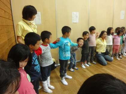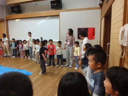 みんなで、『大工のきつつきさん』をしたり、『もえぎようちえん○×クイズ』をしたり、楽しい時間を過ごしました。