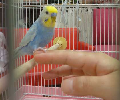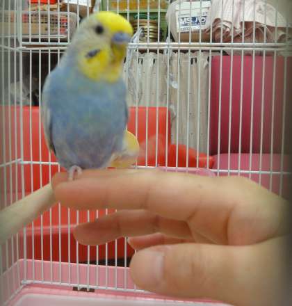 りぼんちゃんはおしゃべり上手な手乗りインコ。