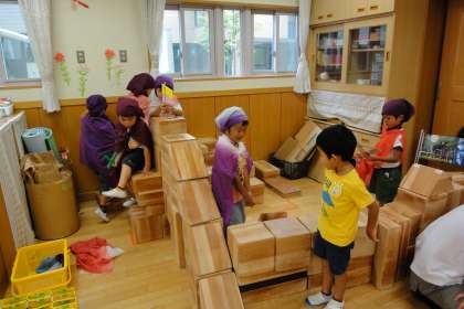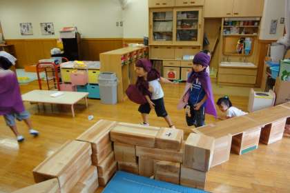 4歳児は1学期から続いている忍者遊びを2学期も引きつづき楽しんでいます。