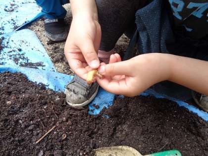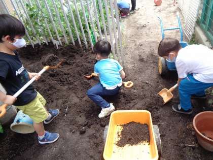土を運んだり,肥料を混ぜたりしているときには,土の中にミミズや幼虫も見つけましたよ!