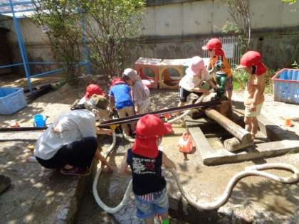 園庭の水遊びも全学年で楽しめるようにこれからみんなで工夫していきたいと思います。今年はどんなふうになるか楽しみですね!